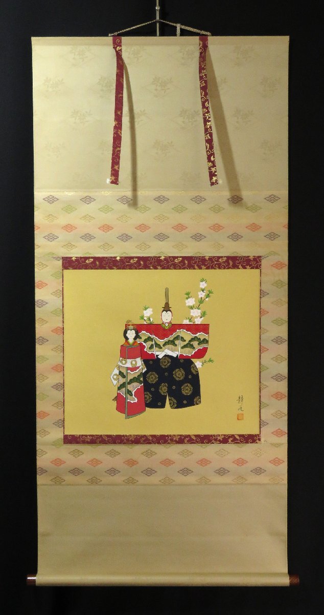 - ◆◇掛軸 村上青苑 雛 尺八横 hanging scroll◇◆春 冬 節句掛け 開運 縁起物 魔除け JY1867