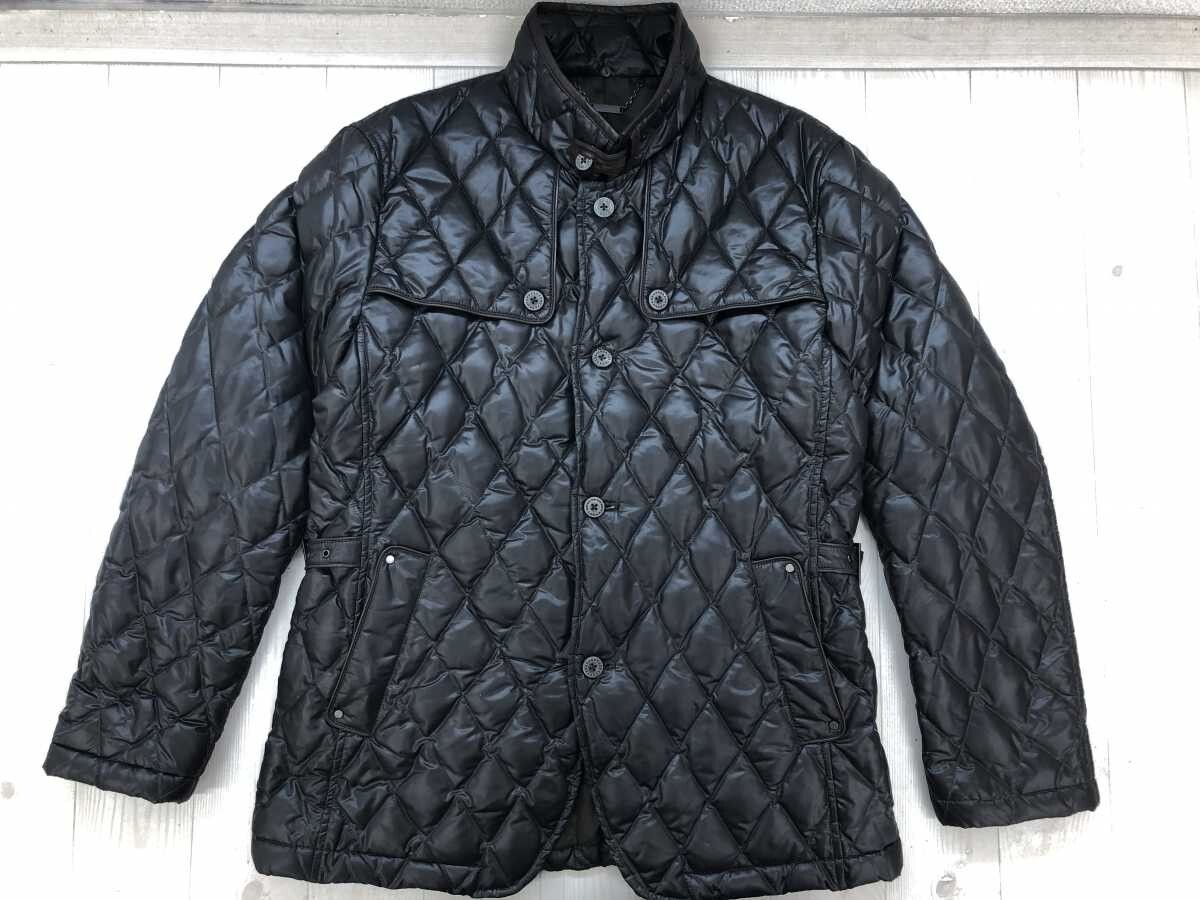 > ジョセフオム JOSEPH HOMME ユーロ トラッド ダイヤ柄 キルティング ハイネック ダウン ライダース コート ジャケット メンズ 50 グレー