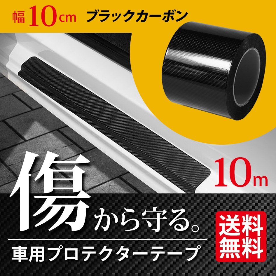 - 車用 プロテクターテープ 幅10cm 10m巻 ブラック カーボン調 フィルム エッジ プロテクト ドア モール キズ防止 内装 外装 宅配便 送料無料