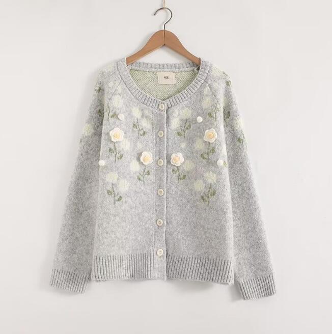 - 人気品カーディガン レディース かわいい 花モチーフ ニット セーター ジャケット アウター ショート丈 冬
