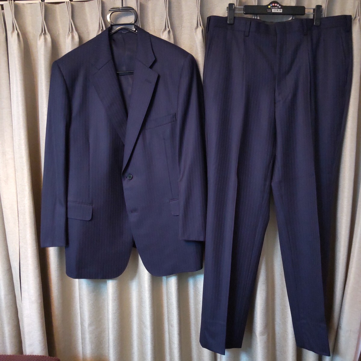 - 新品スーツ■ 高級生地ダークネイビーピンストライプ■BE5■総裏■大賀の日本製■Marlin ENGLAND生地
