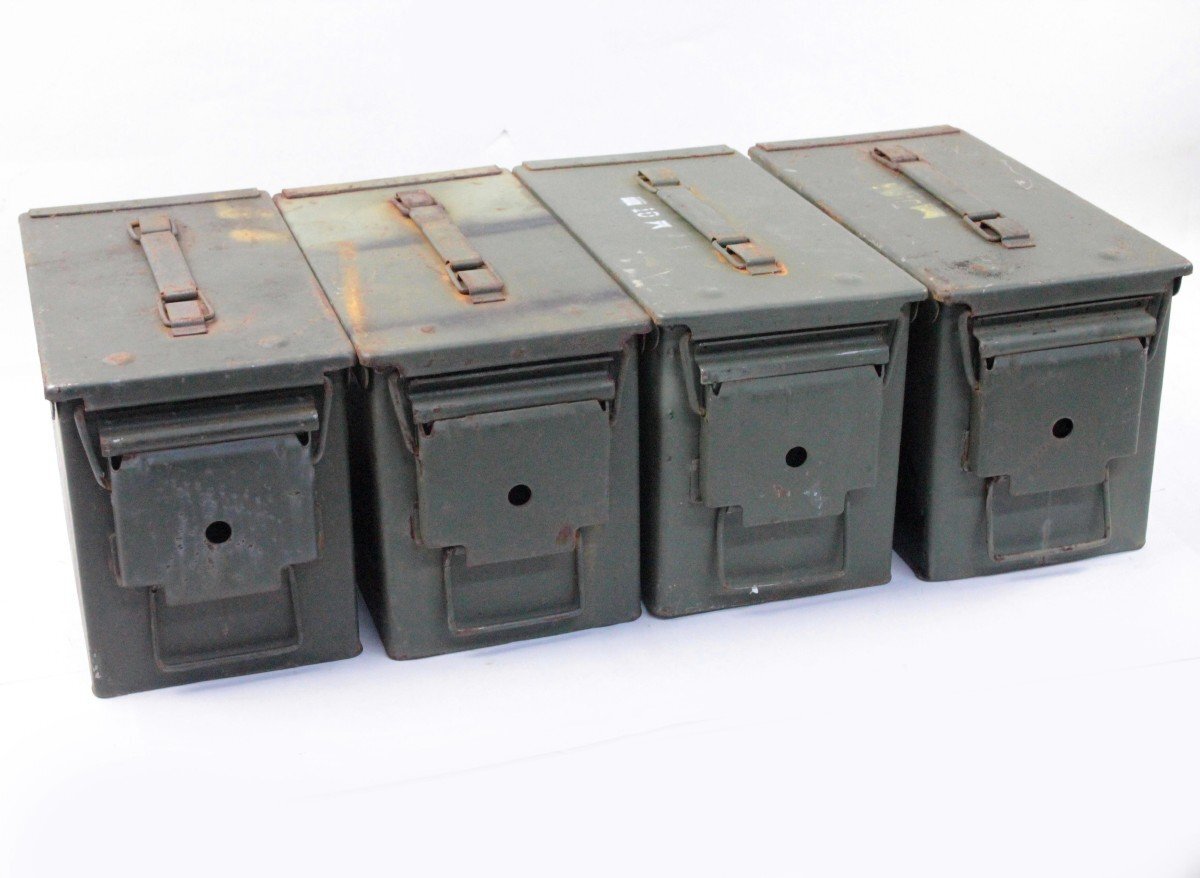 > [4点セット 長期保管品] アンモボックス アンモ缶 弾薬箱 弾薬ケース ミリタリー 放出品 ビンテージ [米軍放出品]