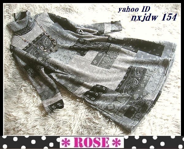 > ◆Rose◇ゆったりワンサイズ バンダナペーズリー×あったか裏起毛♪ゆるオフネックのリラックスOP/ブラック
