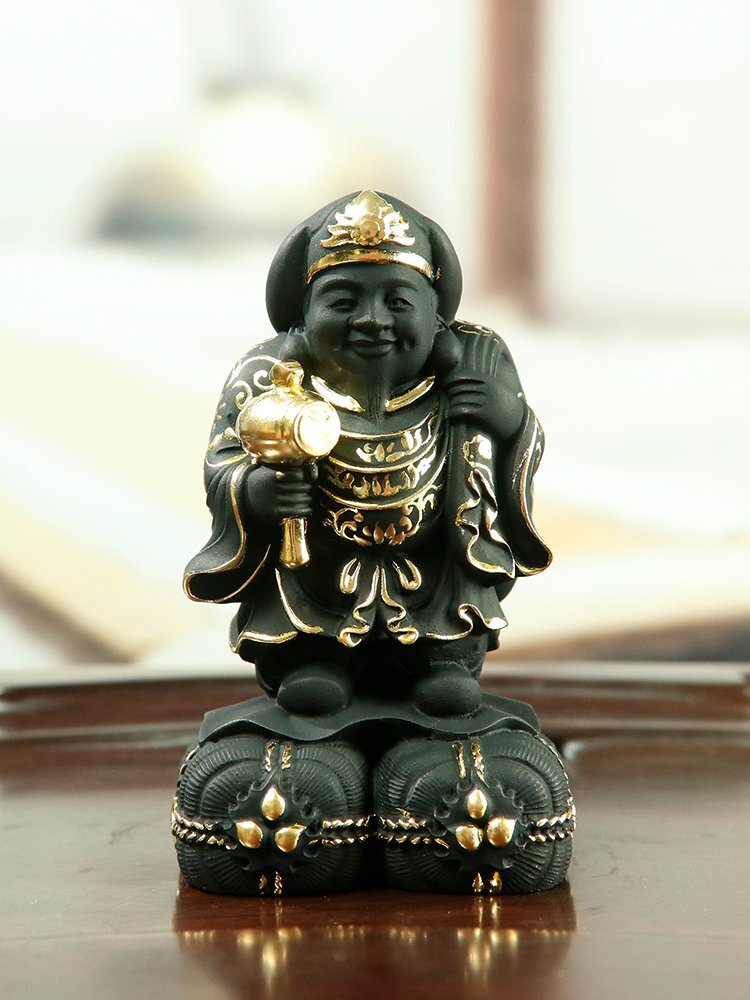 - 送料無料! 日本大黒天 七福神 仏門護法 神七福神 財神 仏像 奉納 仏護神仏 摩訶迦羅 仏教美術細密彫刻24K真金貼付 木彫 小葉黄楊木zhzx275