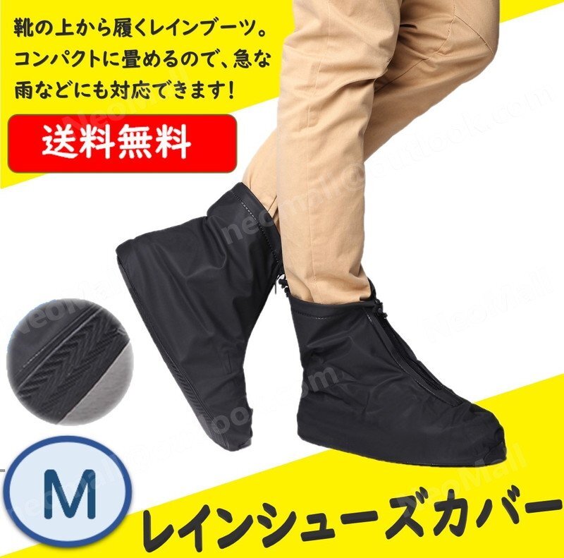 > レインシューズカバー 雨 から靴を 守る! 防水 24.0~24.5cm対応 Mサイズ ブラック自転車バイク 通勤 通学 登山