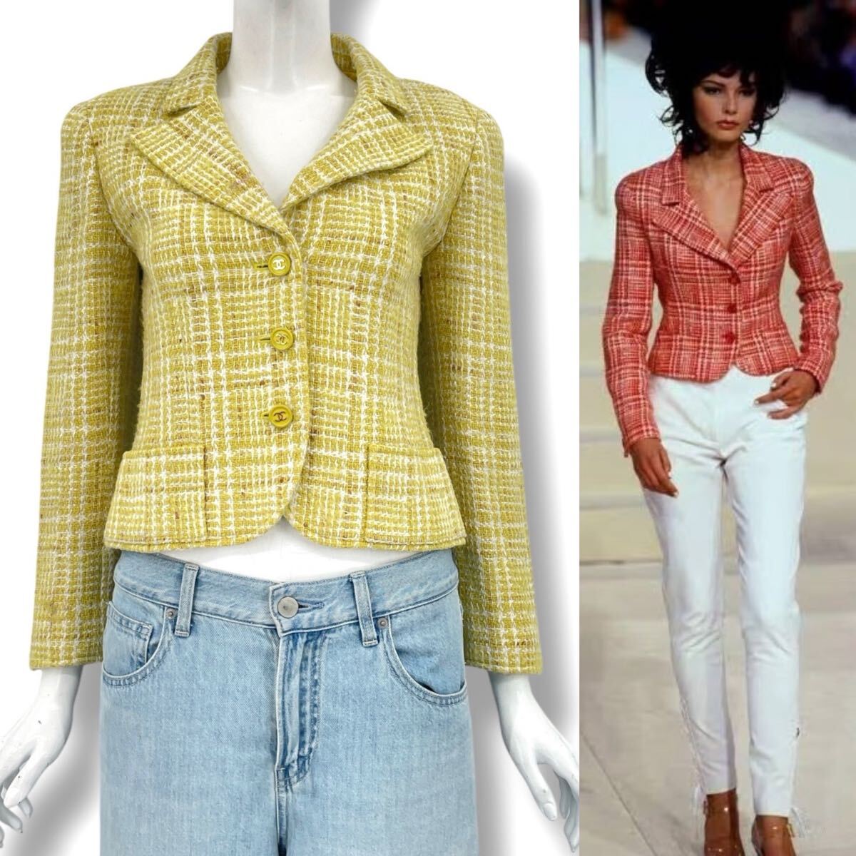 > レア 美品 CHANEL シャネル ジャケット 97P ココボタン ツイード ウール グリーン AH7 1125-14