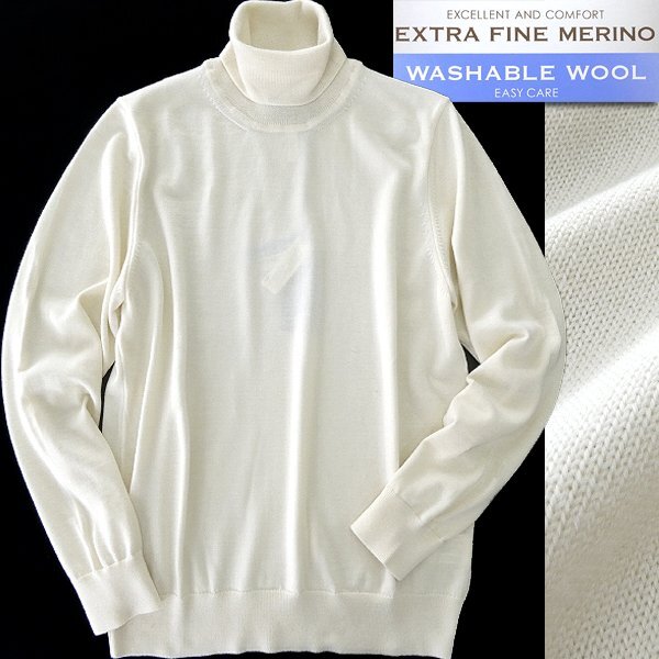 > 新品 gim ジム 1.3万 12G EXTRA FINE MERINO タートルネック ニット L 白 【I42674】 日本製 秋冬 メンズ セーター ウォッシャブル ウール
