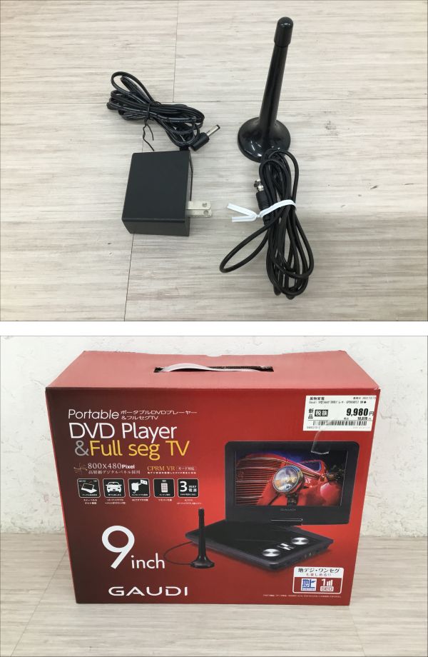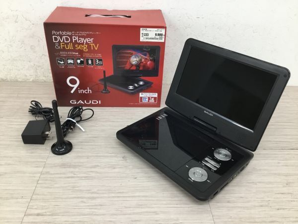 > ●営KZ832-80 【稼働品】 GAUDI GPD09BT2BK 9型ワイド ポータブルDVDプレーヤー&フルセグTV ブラック B-CAS・元箱付き