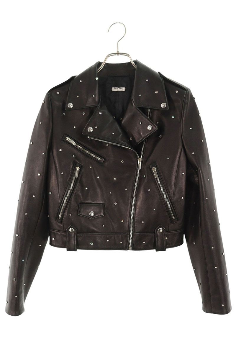 - ミュウミュウ サイズ:42 MPV711 ラインストーン装飾ライダースラムレザージャケット 中古 SB01