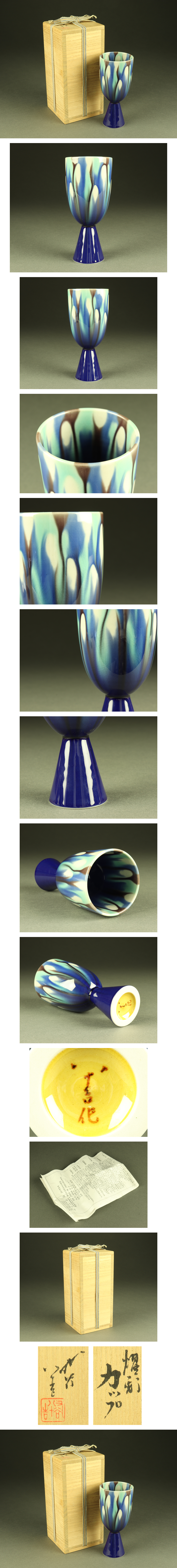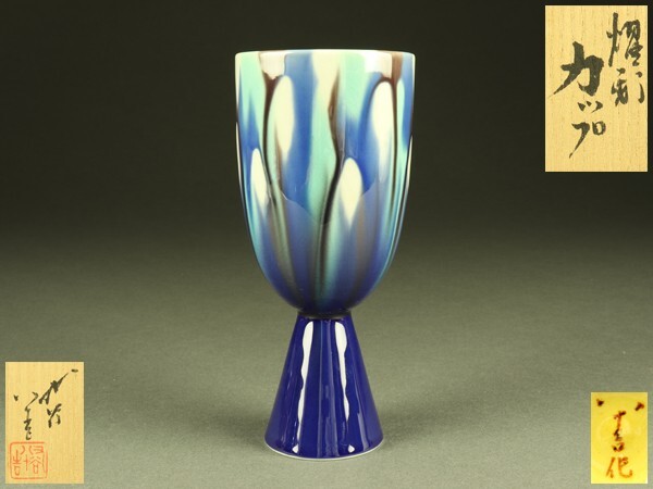 - 【宇】3721 三代 徳田八十吉造 金銘 燿彩 カップ 共箱