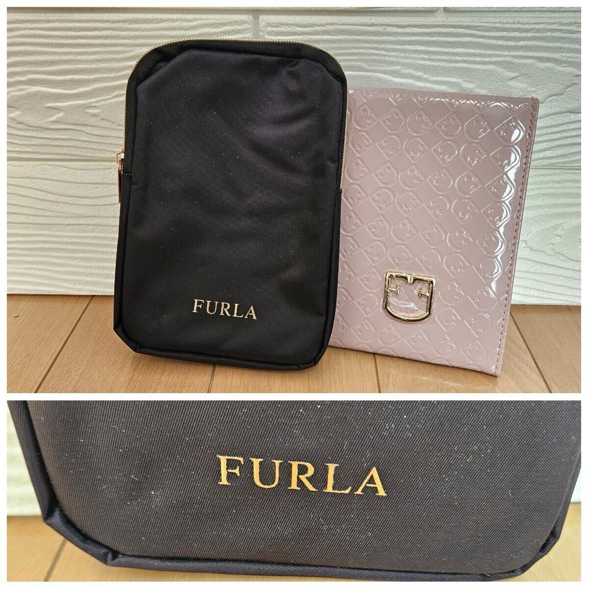 - 未使用品☆FURLA☆フルラ☆ミラー&ミラーケース☆コスメポーチ☆ポーチ☆ブラック☆薄ピンク