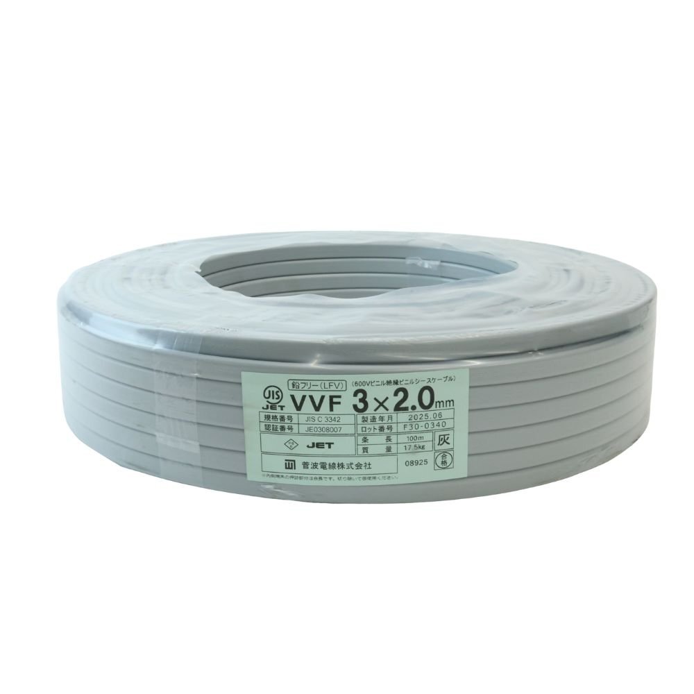管波電線 VVFケーブル 3×2.0mm 100M 灰色 2025年製