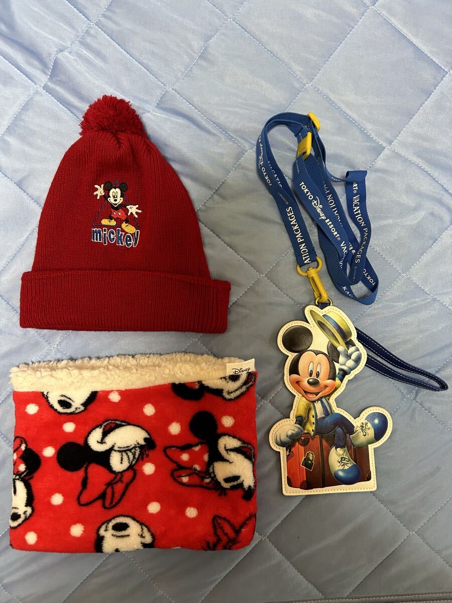 - ディズニーまとめセットニットネックウォーマーパスケースミッキーミニーランドキャラ