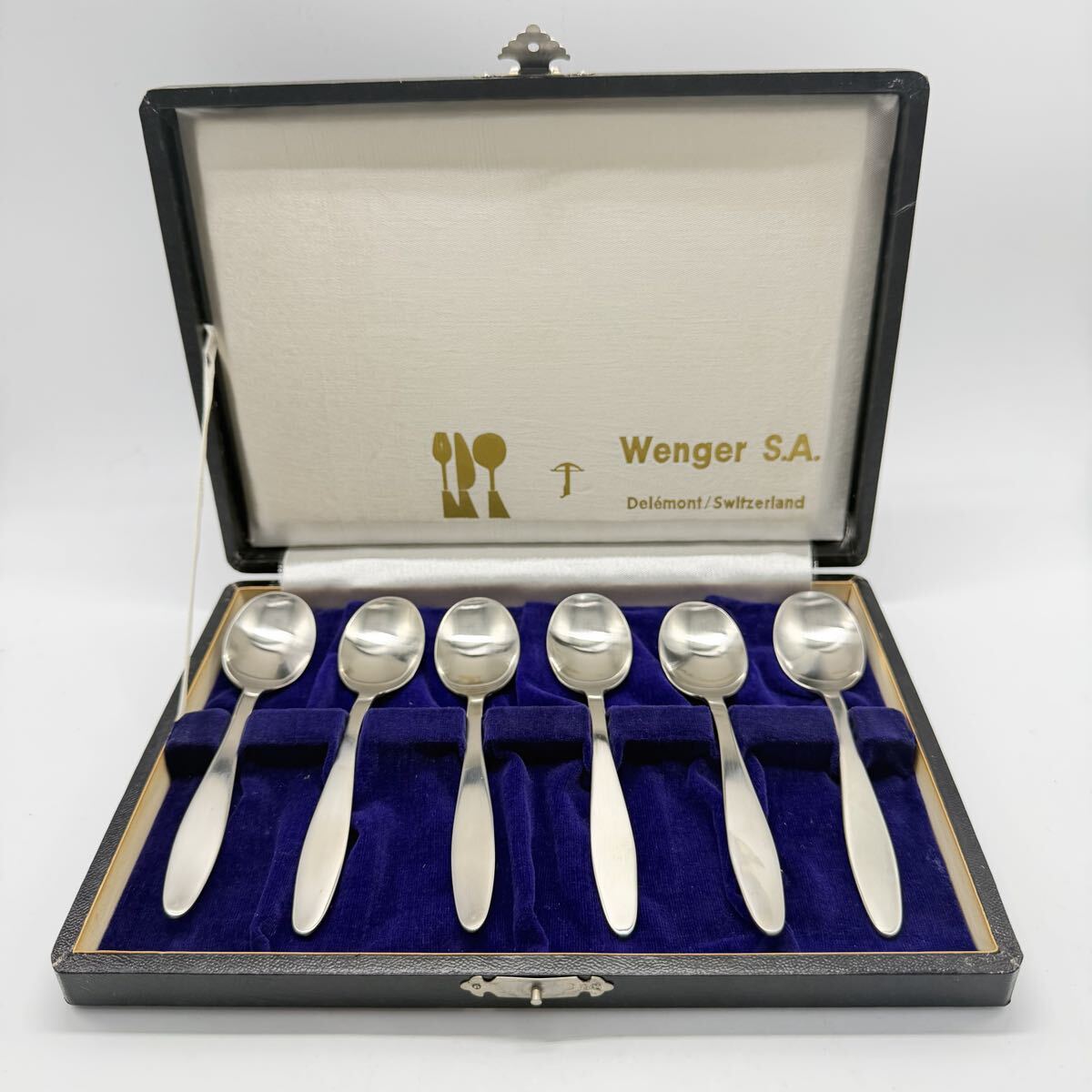 > 1円〜 11A Wenger S.A. スプーン 6本セット Delmont/Switzerland ウェンガー 洋食器 箱付き 贈答品 コレクション レトロ カトラリー 35