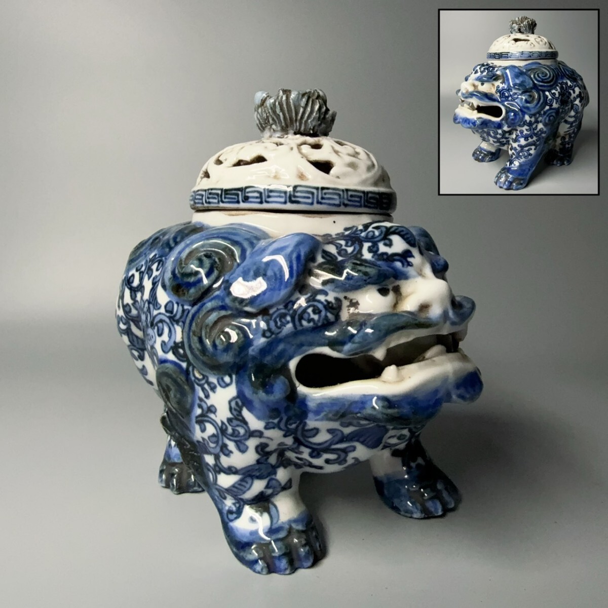 - 古染付 獅子 香炉 唐物 香道具 骨董品 陶磁器 茶道具 時代物
