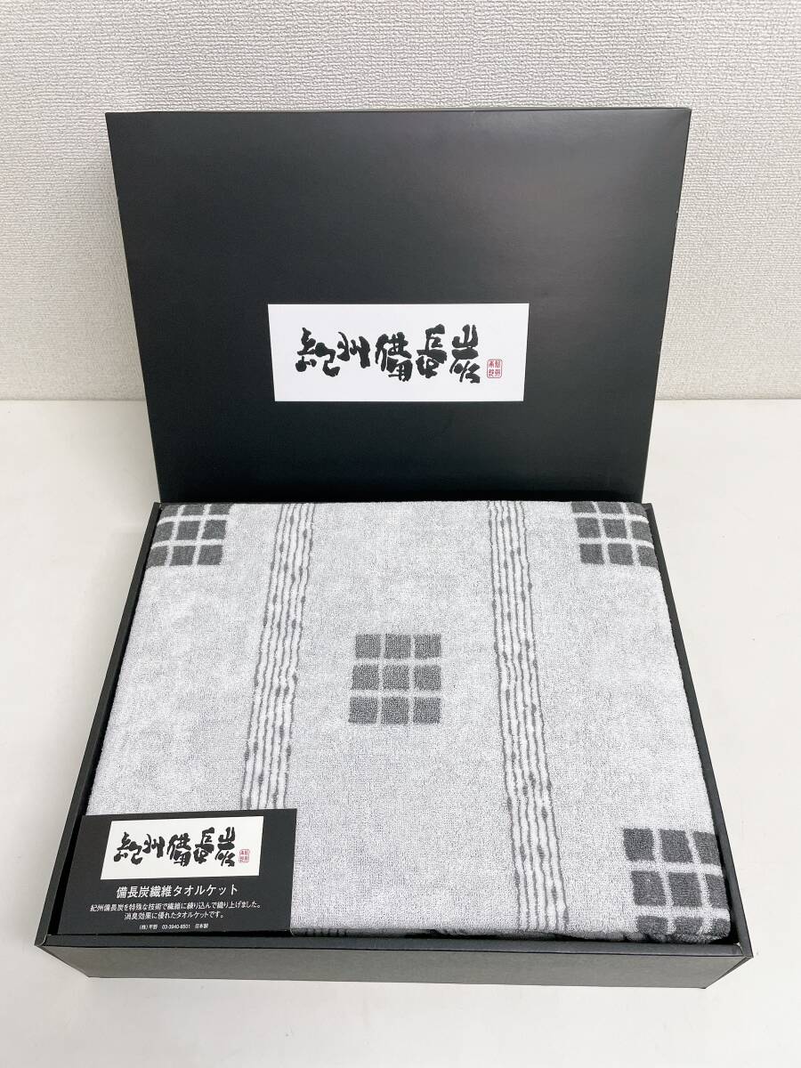 > 【紀州備長炭 備長炭繊維タオルケット】ジャガードタオルケット/シンプル/肌寒い日に/抗菌効果/消臭/外箱入/A711-337
