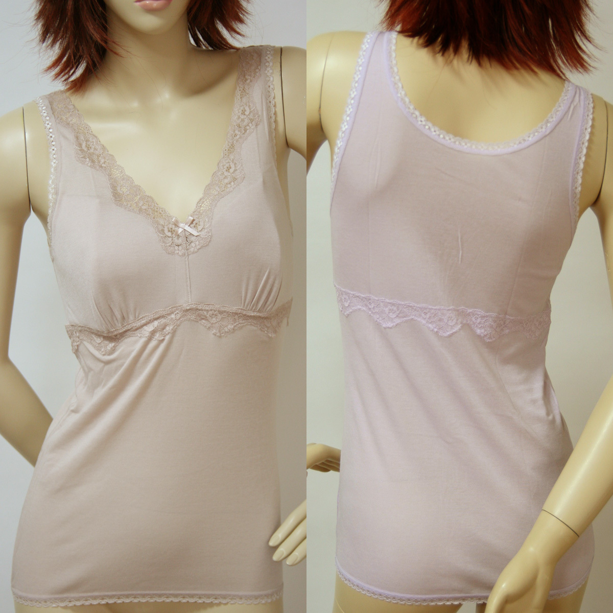 > 送料無料◆超お得◆2色組◆安心と信頼の【日本製】◆キュプラ配合◆綿混素材◆ブラカップ付き◆ラン型インナー(S/ラベンダー&ベージュ)