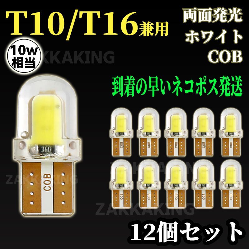 > T10 LED T16 ホワイト バックランプ 爆光 12個 セット COB バルブ 白 ウェッジ 12V ルームランプ ポジションランプ ナンバー灯 車 az