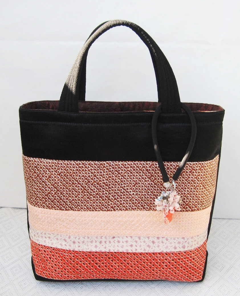 - 布乃言葉*徒然なるままに...”・。トートバック・御正月と絹絞りと古布繻子地の帯から”三彩:バックチャームが御供です♪”