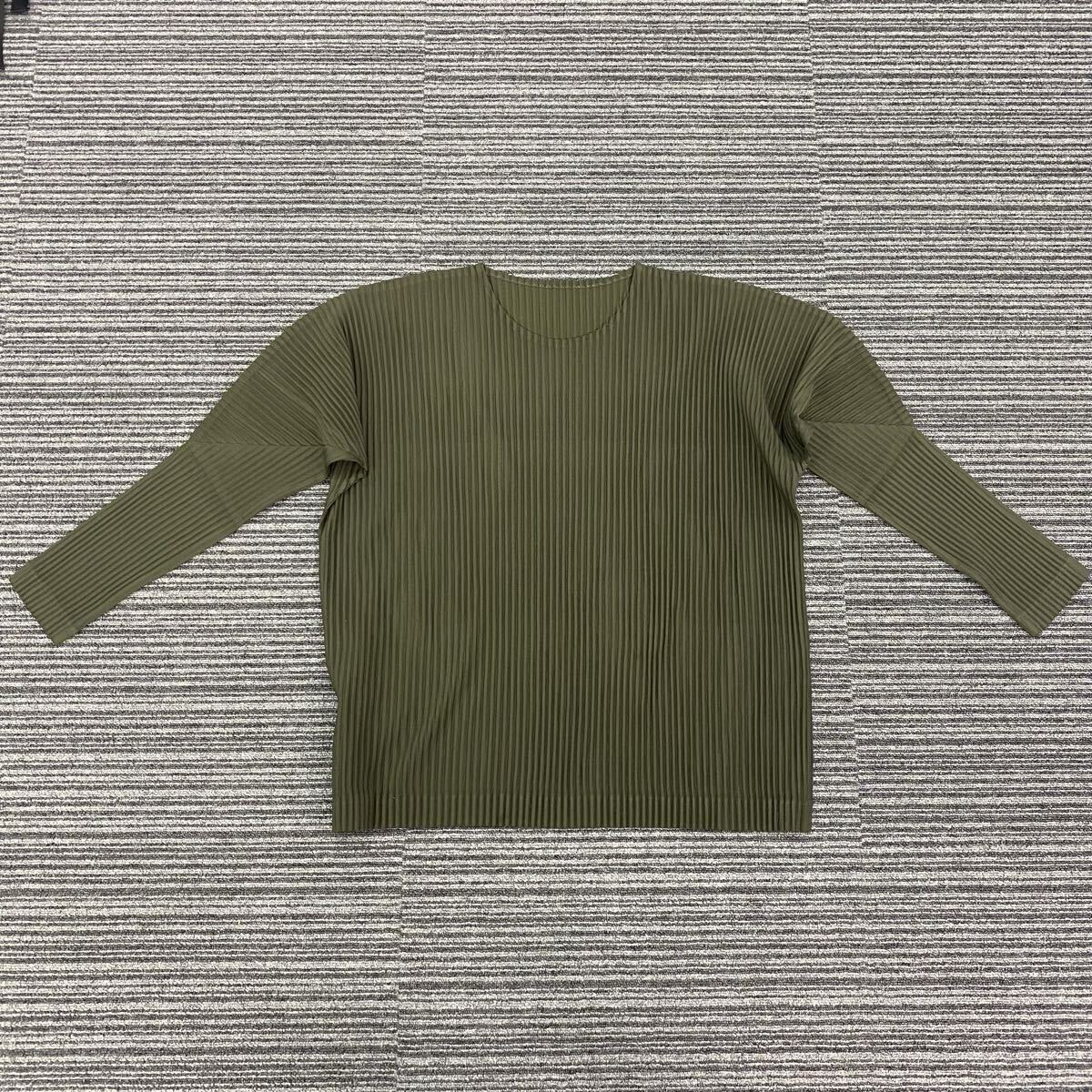 > 881 イッセイミヤケメン ISSEY MIYAKE MEN プリーツ加工 長袖 Tシャツ カットソー ロングスリーブ カーキ メンズ