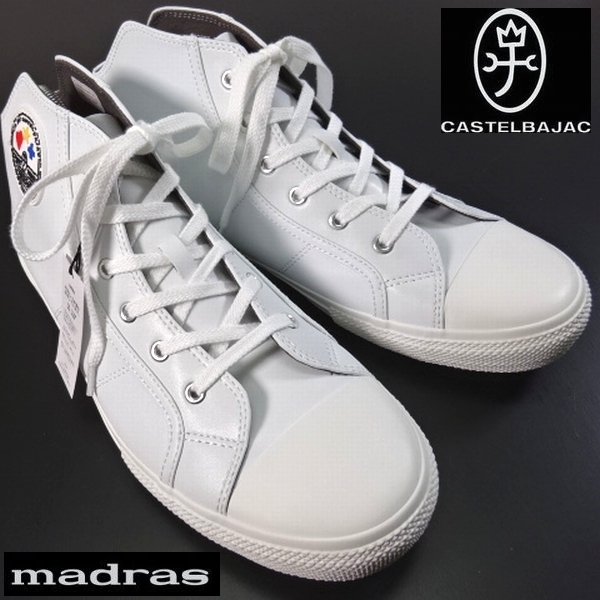 - 新品 CASTELBAJAC カステルバジャック 定1.76万 ワッペン Fレザー シューズ ミッドカット スニーカー 靴 26.5cm 白 madras マドラス メンズ