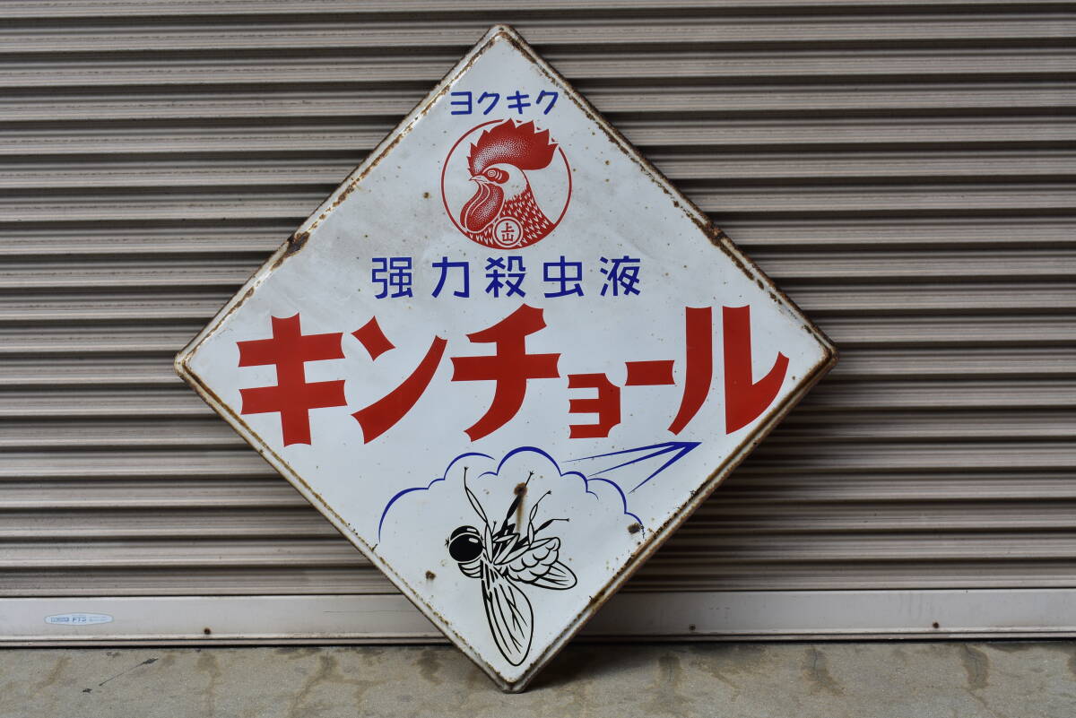 - うぶ品 昭和レトロ 強力殺虫液キンチョール ホーロー看板 琺瑯看板 古い看板 直径約90.5cm 当時物