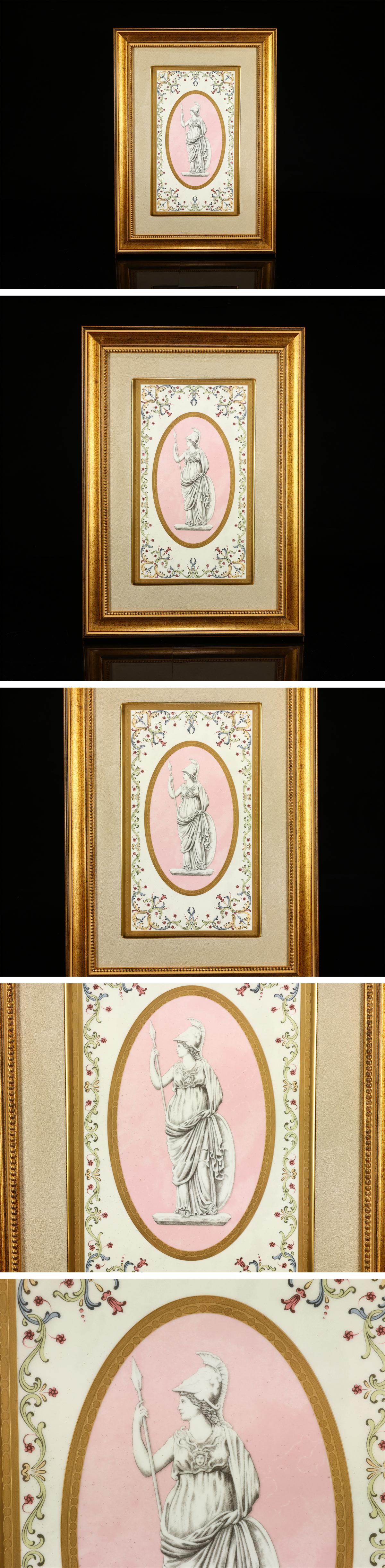 > 【吉】CM336 WEDGWOOD 【ウェッジウッド】 色絵陶板画 MINERVA PLAQUE 人物画 額装 額サイズ44.5×32㎝/共箱付 美品Y!
