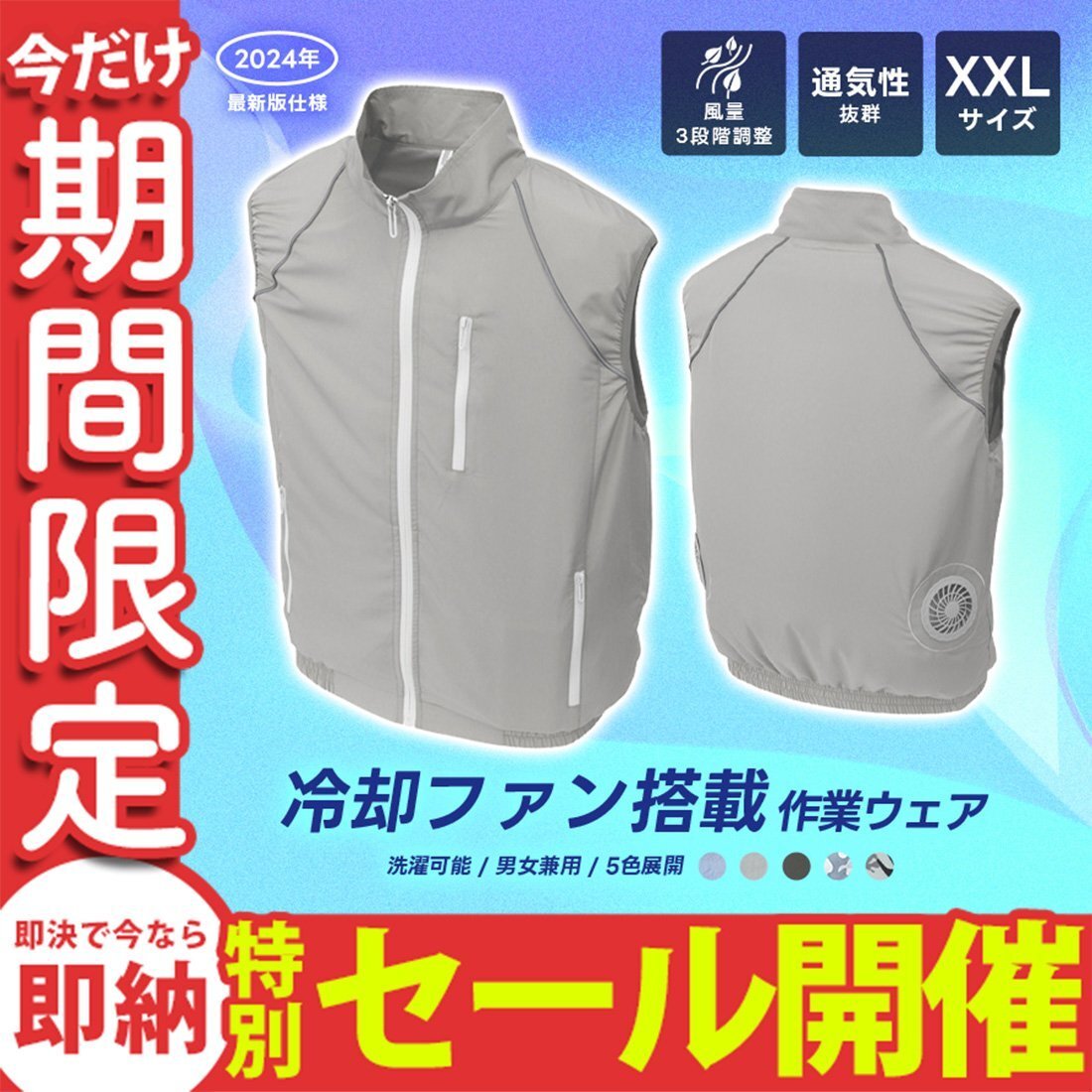> 【数量限定セール】空調作業服 XXLサイズ クールベスト 空調ベスト 洗える 軽量 扇風機 作業服 ベスト ゴルフウエア 熱中症対策 空調 新品