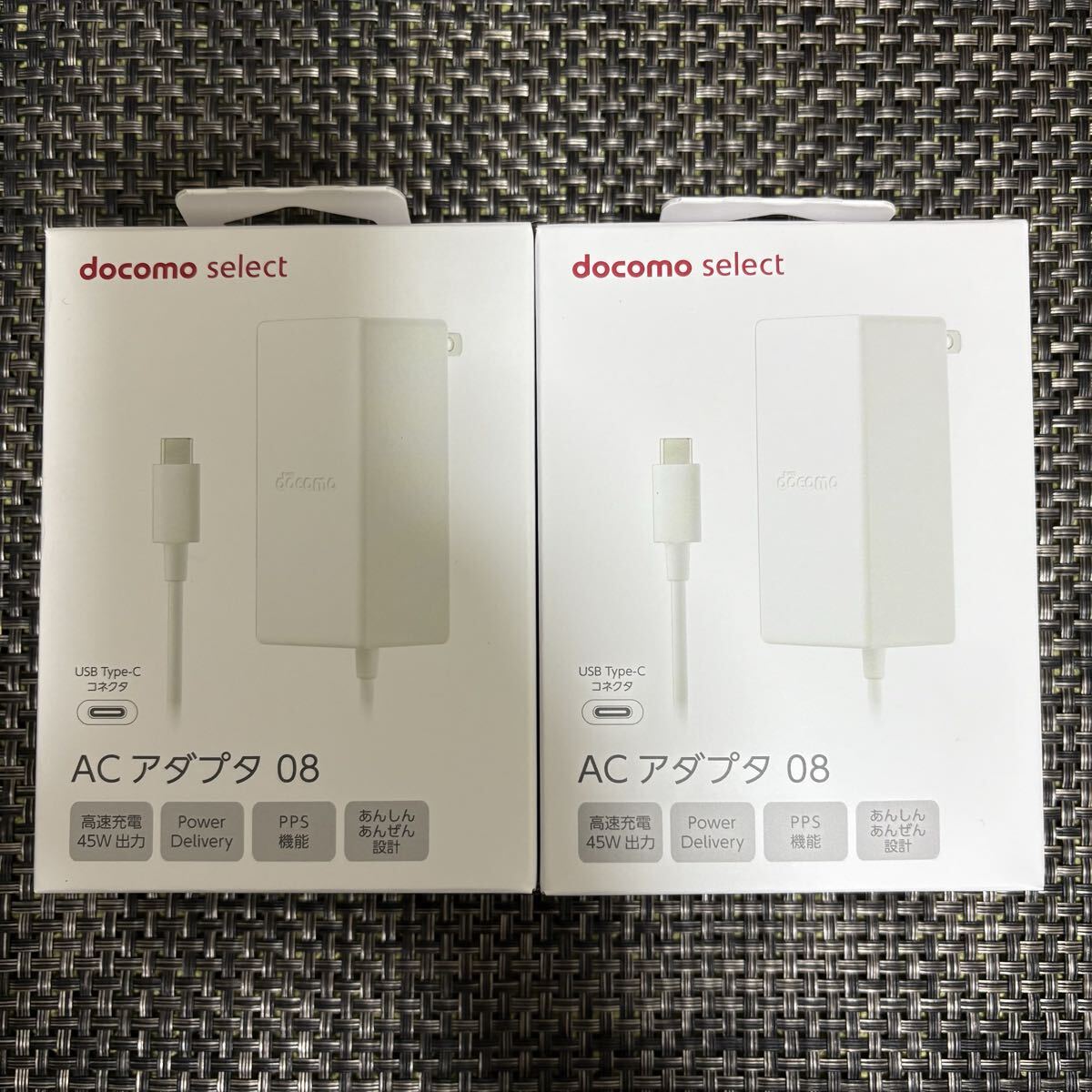 > 新品未使用 ACアダプタ 08 USB タイプC ドコモ セレクト ホワイト android充電器 2個セット