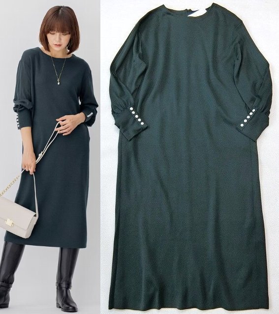 - ■23区サイズ38ウールブレンドパールニットワンピース/ダークグリーン28,600円■