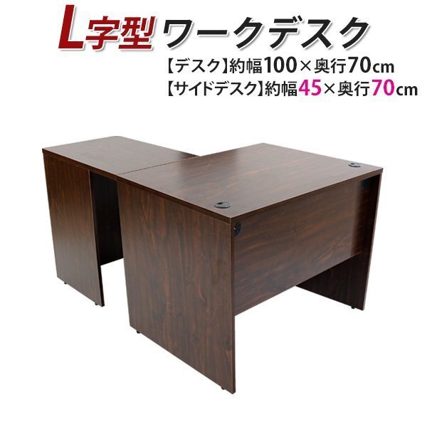 - 送料無料 ワークデスク L字型 約W100×D140×H73.5 幕板 ゲーミングデスク L字デスク L型 サイドデスク 連結 オフィス 右用 ウォールナット