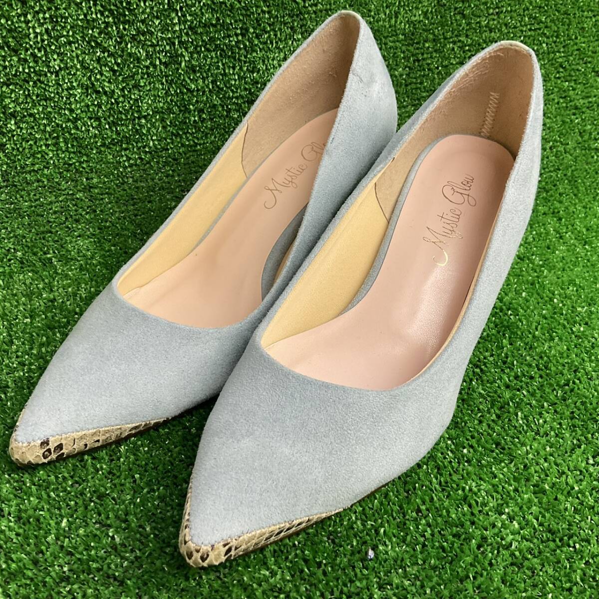 - MISTIC GLOW ポインテッドトゥパンプス 23cm ミスティックグロウ スエード調 ヒールパンプス ライトブルー レディース ブランド 婦人靴