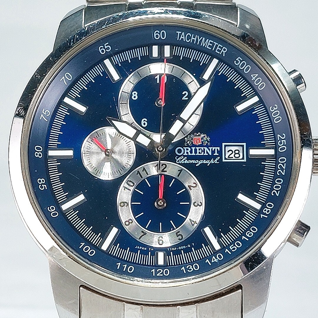 - ORIENT オリエント 腕時計 TT0P-C5-B クオーツ アナログ ラウンド クロノグラフ カレンダー スモールセコンド ブルー コレクション 動作OK
