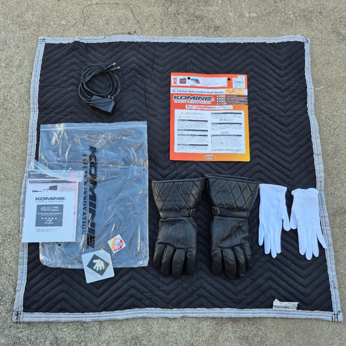 > 電熱コミネ(KOMINE) Lサイズ バイク用 グローブ EK-218 ネオレトロエレクトリックヒートグローブ Black 本革 フルセット スムス付けて使用