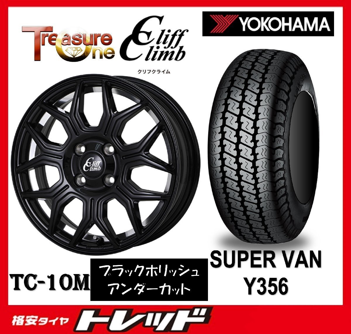 > 数量限定 2024年製)新横浜師岡店 新品タイヤアルミ4本set クリフクライム TC10M 12インチ4.0J4穴100+42 YOKOHAMA Y356 145/80R12 軽トラ他