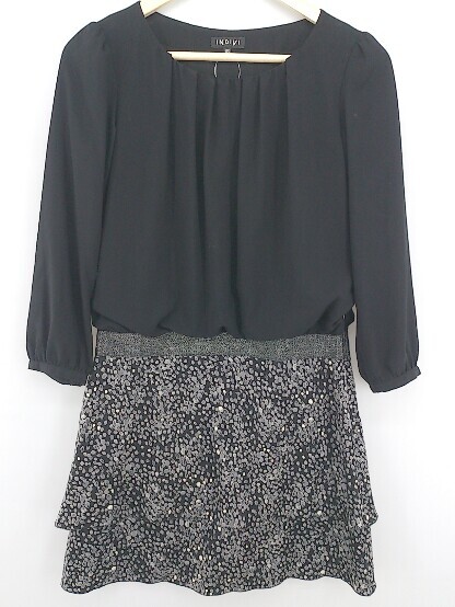- ◇ INDIVI インディヴィ 七分袖 膝丈 ワンピース 05 ブラック グレー レディース