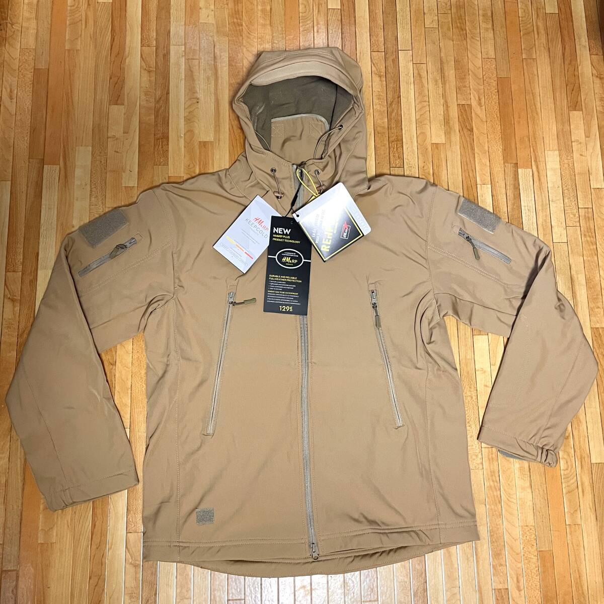 - 新品1411 防水透湿 ソフトシェル アーミージャケット サンドカーキ XLサイズ