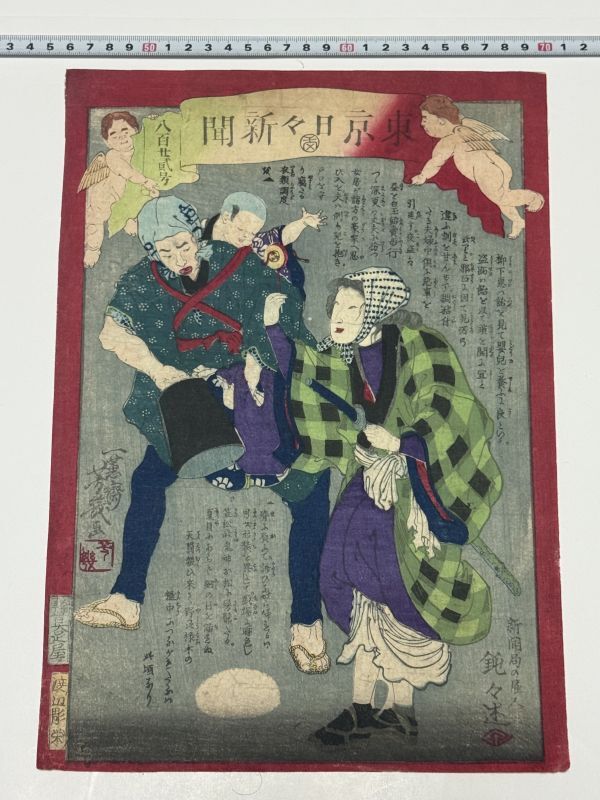 - 【真作】「東京日々新聞 第822号」大判1枚 芳幾画 純々述|和本絵本本物浮世絵刷物摺物錦絵明治国芳年子供おもちゃ