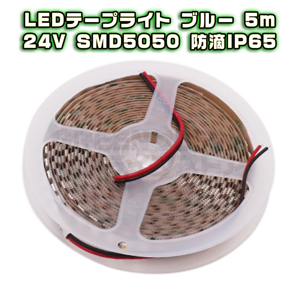 - 防水 60LED 24V LED テープライト 5m ブルー SMD5050