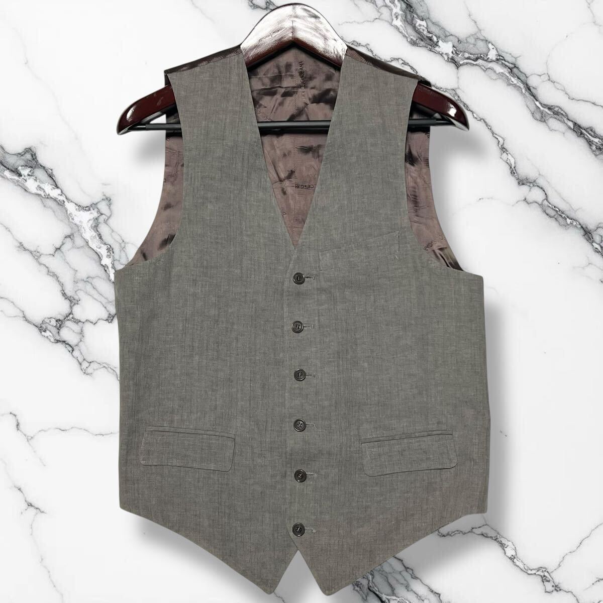 - 美麗品◎XLサイズ位!!ドルチェ&ガッバーナ【最高級の逸品!!】DOLCE&GABBANA ベスト ジレ リネン ロゴ グレー 光沢感 イタリア製◎メンズ
