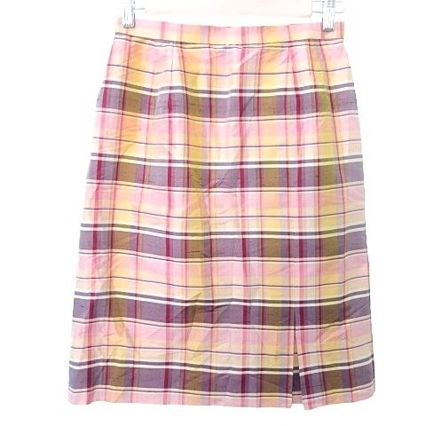> ダックス DAKS シルク スカート ひざ丈 セミタイト チェック 67-93 ピンク系 ■YHS2 A1124 レディース