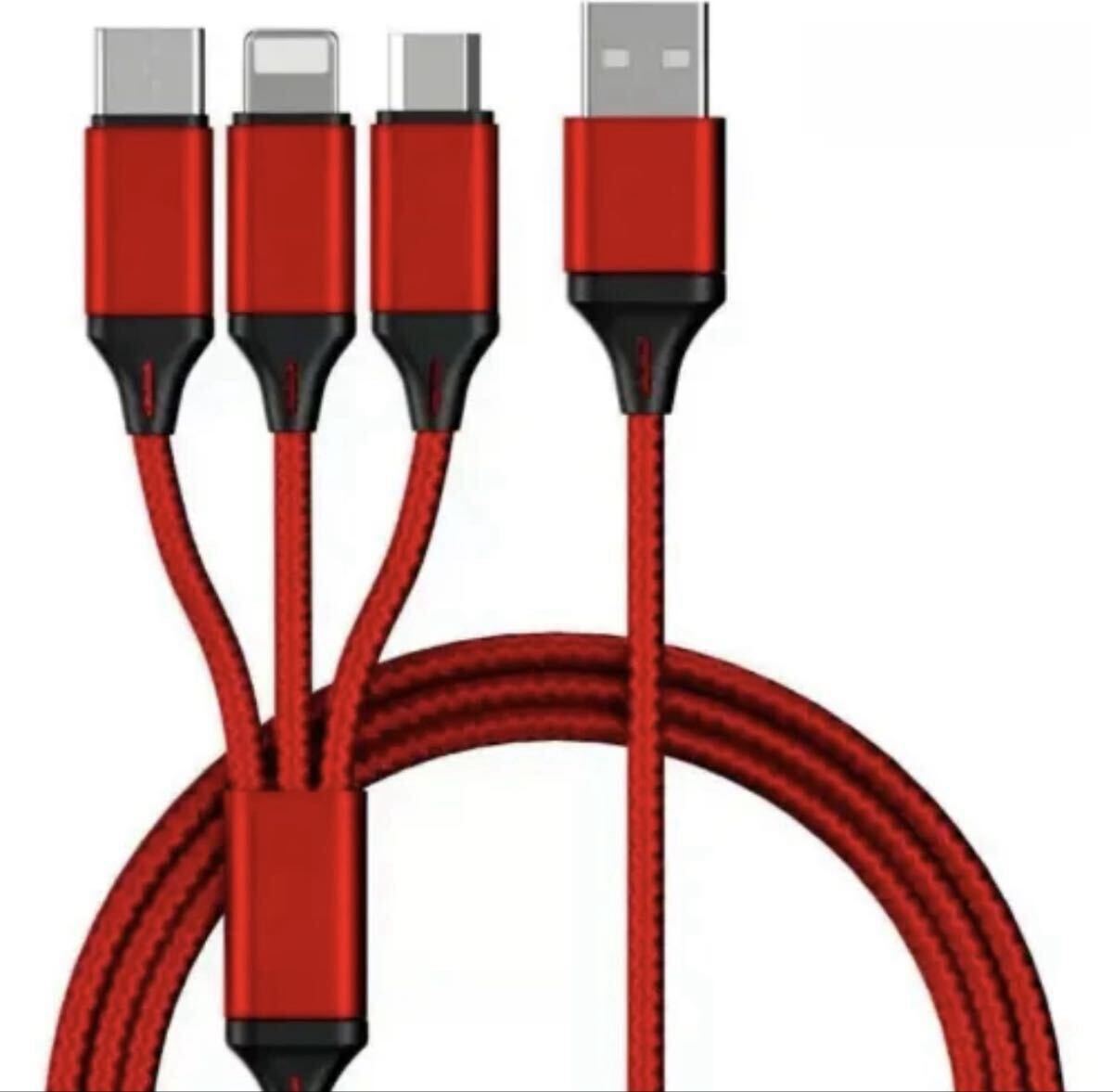 - 新品 レッド 3in1 USBケーブル Type-C マイクロUSB Android iPhone 充電ケーブル ケーブル ライトニングケーブル