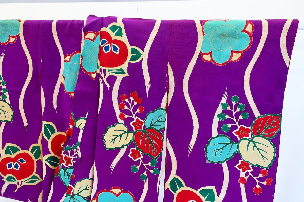 - アンティーク 小紋 身丈150.0cm 紫 袷 大正ロマン レトロ 正絹 仕立て上がり kimono 着物フィ 20274