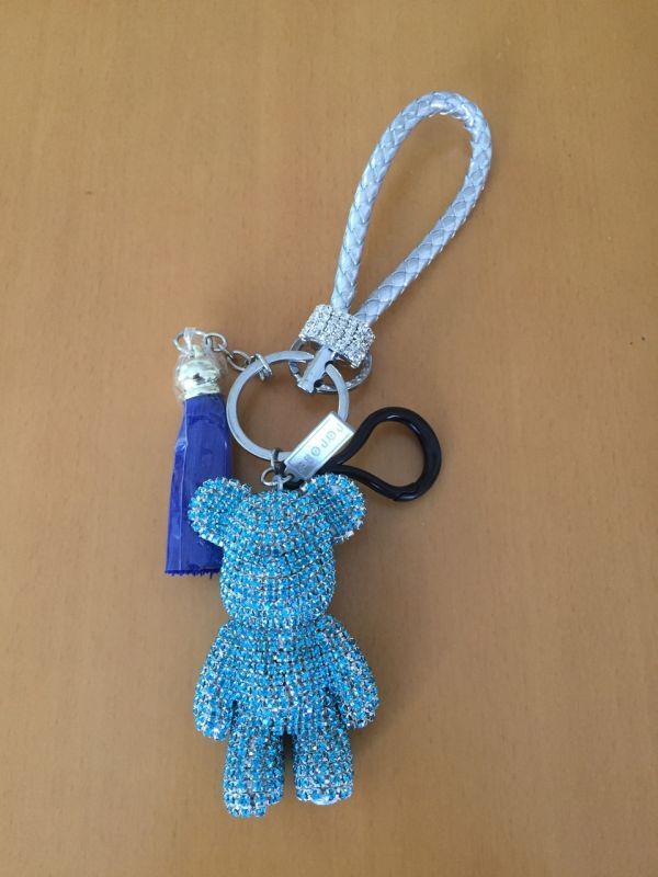 - ★ 【新品・未使用】 クリスタル 熊 くま バッグチャーム キーホルダー かわいい キーリング ブルー きらきら プレゼント チャーム