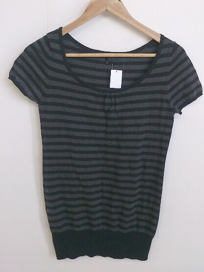 > ◇ UNTITLED アンタイトル ボーダー 薄手 半袖 ニット カットソー サイズ2 ブラック系 レディース P