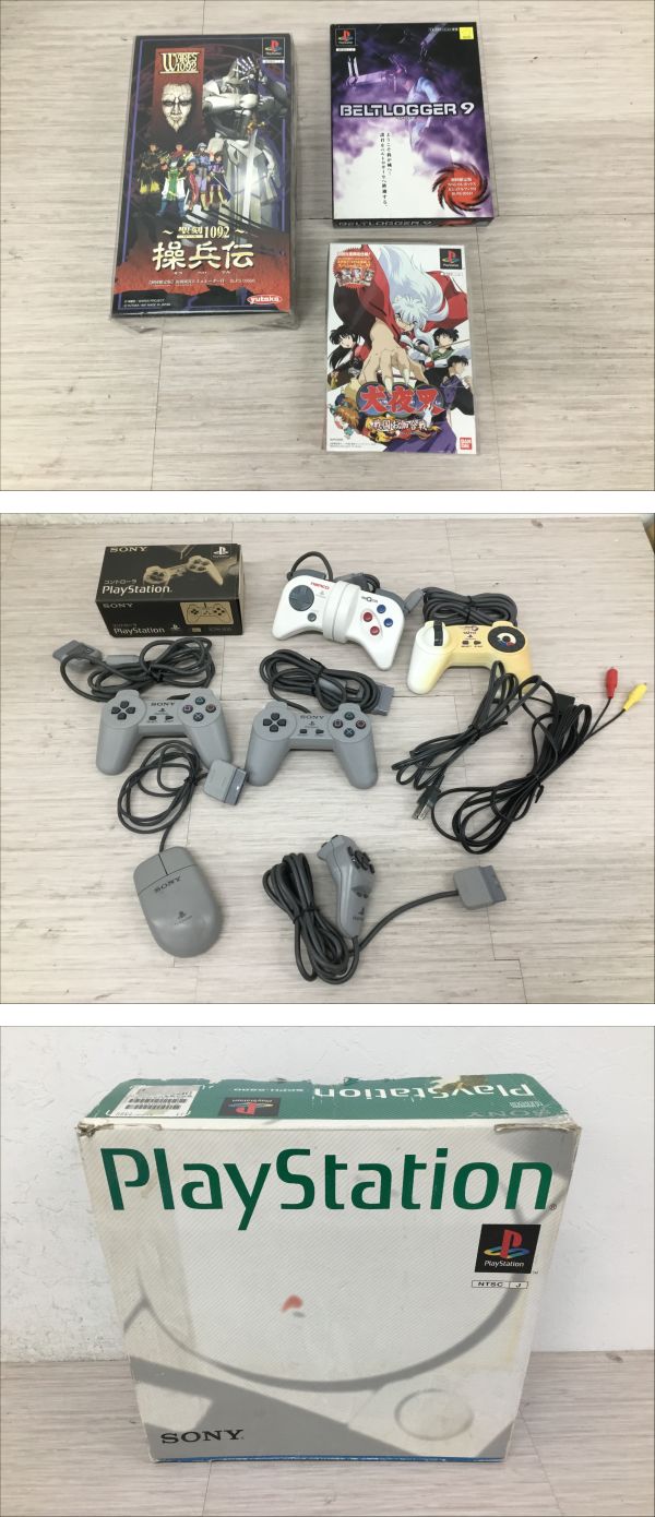 > ●営KW033-120 【通電確認済み】 PlayStation プレステ SCPH-5500 本体 / 銃型コントローラー / ルーレットコントローラー 他 セット