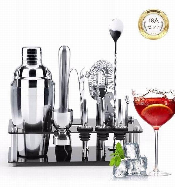 > 750ml カクテルシェーカー 18点セット バーテンダー カクテル作り カクテルセット ステンレス鋼製