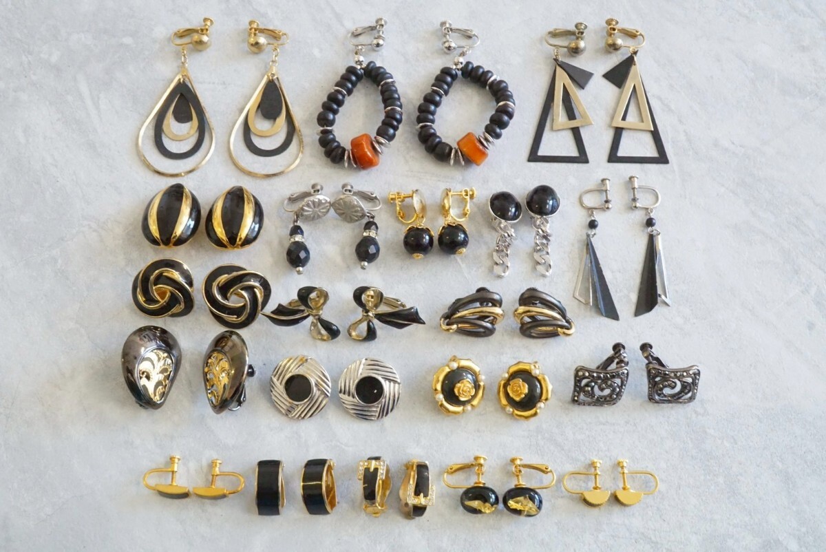 - C1289 黒/ブラック色系 海外製など ヴィンテージ イヤリング 20点セット アクセサリー 両耳揃い 大量 まとめて おまとめ まとめ売り