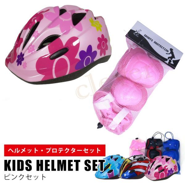 - ヘルメット ピンクセット 自転車 子供用 キッズ用ヘルメット&プロテクターセット 軽量 ジュニア CEマーク ダイヤル式 サイズ調整機能付