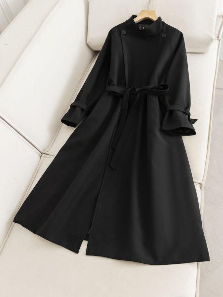 - ダウンコート チェスターコート 上品 薄手 ベルト付き ロング丈 エレガント レディース ラシャコート ブラック XLサイズ xfz34.1.XL